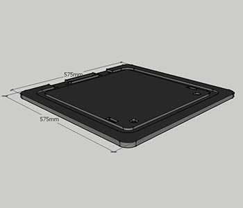 Brodski prozor izrađen od plexiglasa 12 mm. Dimenzije prozora 575 mm x 575 mm, upuštenje u prozoru za brtvu kružno